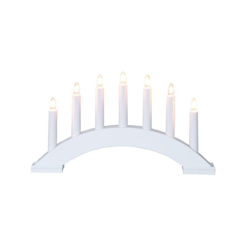 Adventstake Bea hvit. 7 lys. Utskiftbare glødepærer. Bredde 39cm. Høyde 22 cm. Vi har reservepærer.