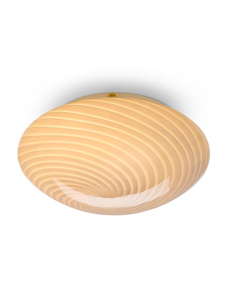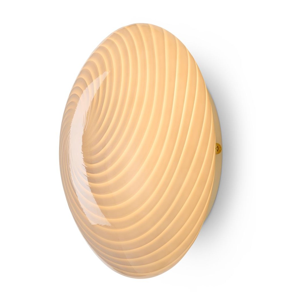 Candy takbeslag/vegglampe grå. Nydelig farget glass med spiralmønster. Hvitt beslag med messingskruer. 1xE27. Diam. 30cm.