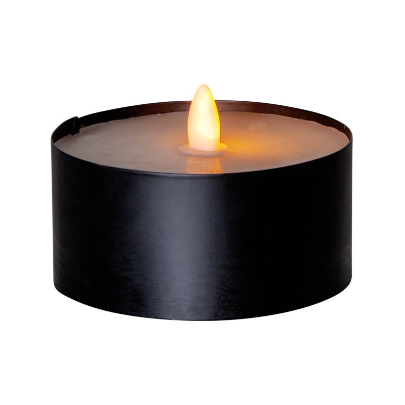 Batteridrevet fakkel med gult flammende lys. Sort med timer (6/18t). For 2xAA batterier. Batterier medfølger ikke. Brenntid ca 500t.