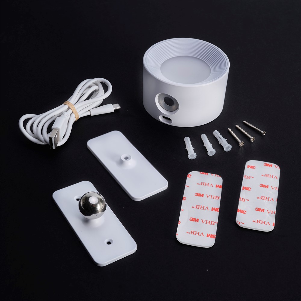 Oppladbar vegglampe LED. Hvit. Det avtagbare lampehodet har av/på knapp med 3-trinns dimmefunksjon. I tillegg kan man velge fargetemperatur (1800K, 2500K eller 3000K). Leveres med Usb ladekabel (ikke plugg) og veggfeste med kuleledd. Kun for innendørs bruk.