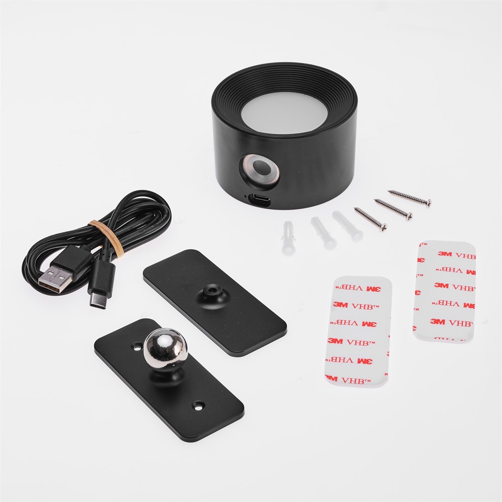 Oppladbar vegglampe LED. Sort. Det avtagbare lampehodet har av/på knapp med 3-trinns dimmefunksjon. I tillegg kan man velge fargetemperatur (1800K, 2500K eller 3000K). Leveres med Usb ladekabel (ikke plugg) og veggfeste med kuleledd. Kun for innendørs bruk.
