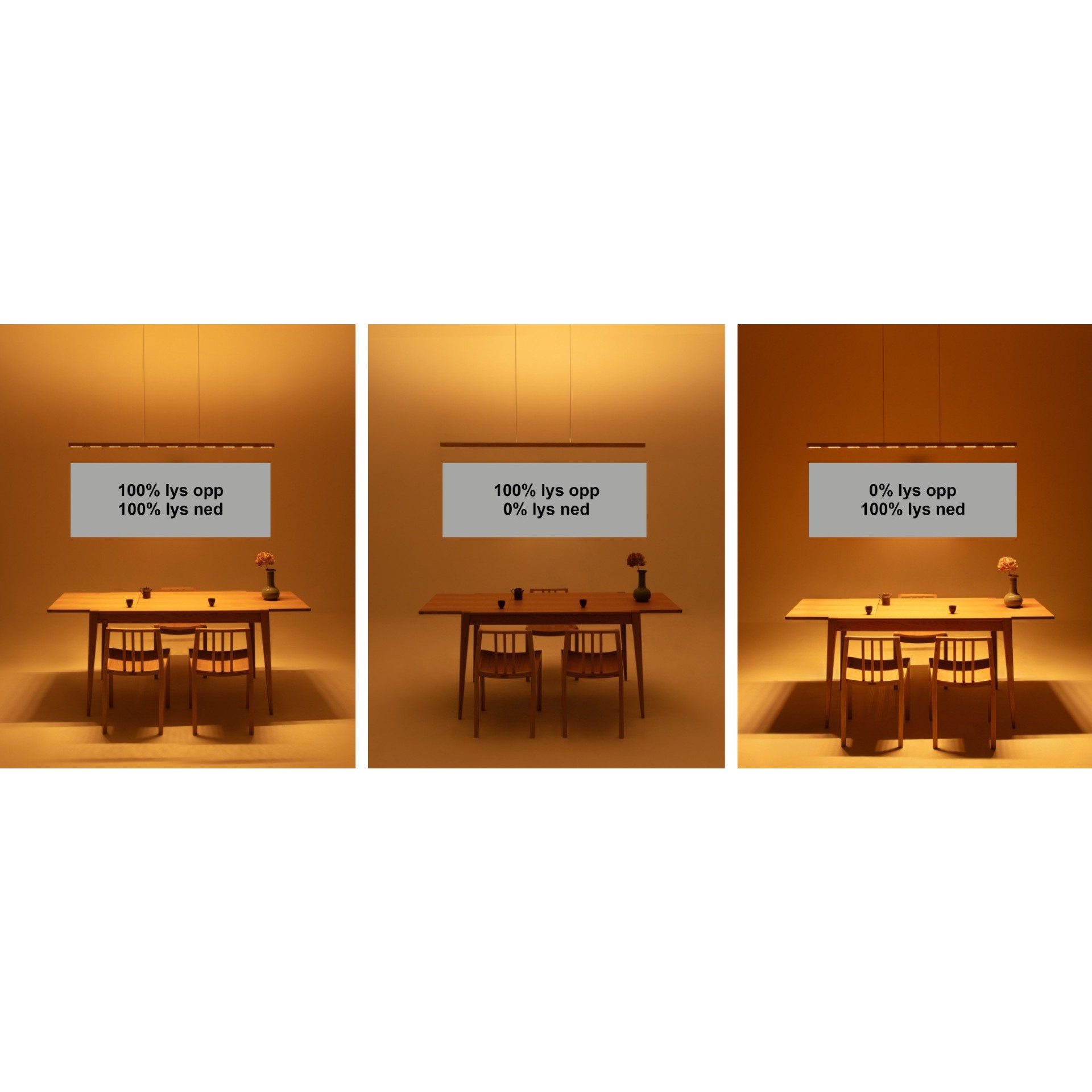 Valentina taklampe eik. 10,5w LED ned og 22,4w LED opp. Lengde 122 cm. 2700K.