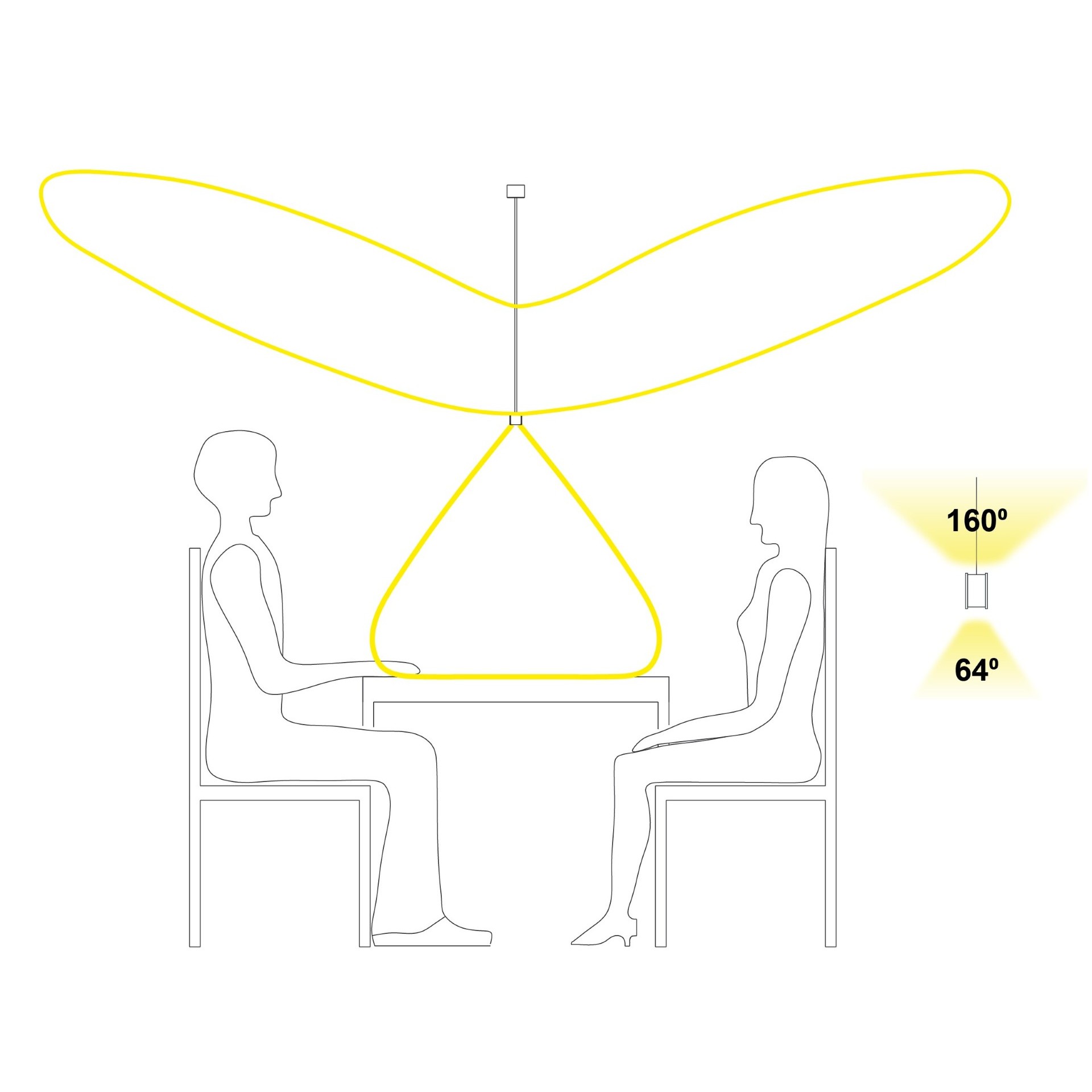 Slank og elegant pendel i langstrakt design, som passer perfekt over spisebord og kjøkkenøy. Lampen har både opp- og nedlys og sens-dim funksjon.